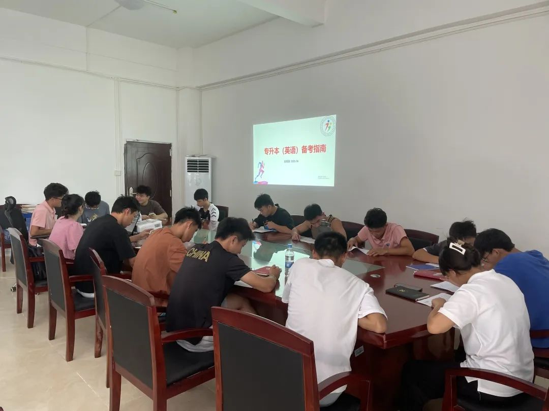 太阳成集团tyc234cc学工办为21级的同学们制定了详细的离校前学习安排,两位辅导员从升本整体情况分析、复习计划安排、考试科目分析、院校选择等多个角度进行了详细解读,同时对语文、英语、专业课的考试大纲、详细知识点进行了分析,带领同学们一同对知识点进行了初步学习,并且太阳成集团tyc234cc开放了公司会议室、员工党支部等空间给同学们提供良好的学习场地,辅导员能够及时给予学习解答与支持。