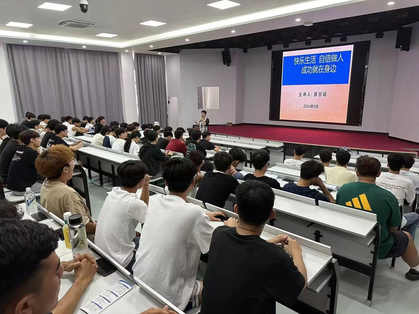 本次活动由离退休老师黄慧娟担任主讲。黄老师以《快乐生活,自信做人,成功就在身边》为题,向同学们生动讲述了当代在校老员工所需的八大心态,并深入浅出地诠释信念、信心、信任与成功的关系。黄老师指出老员工应提高文化素养,努力做到立大志、明大德、成大才、担大任。讲座结束后,黄老师与现场员工进行交流互动,对员工如何在日常学习、生活中更好地保持良好的心态等问题进行详细解答。
