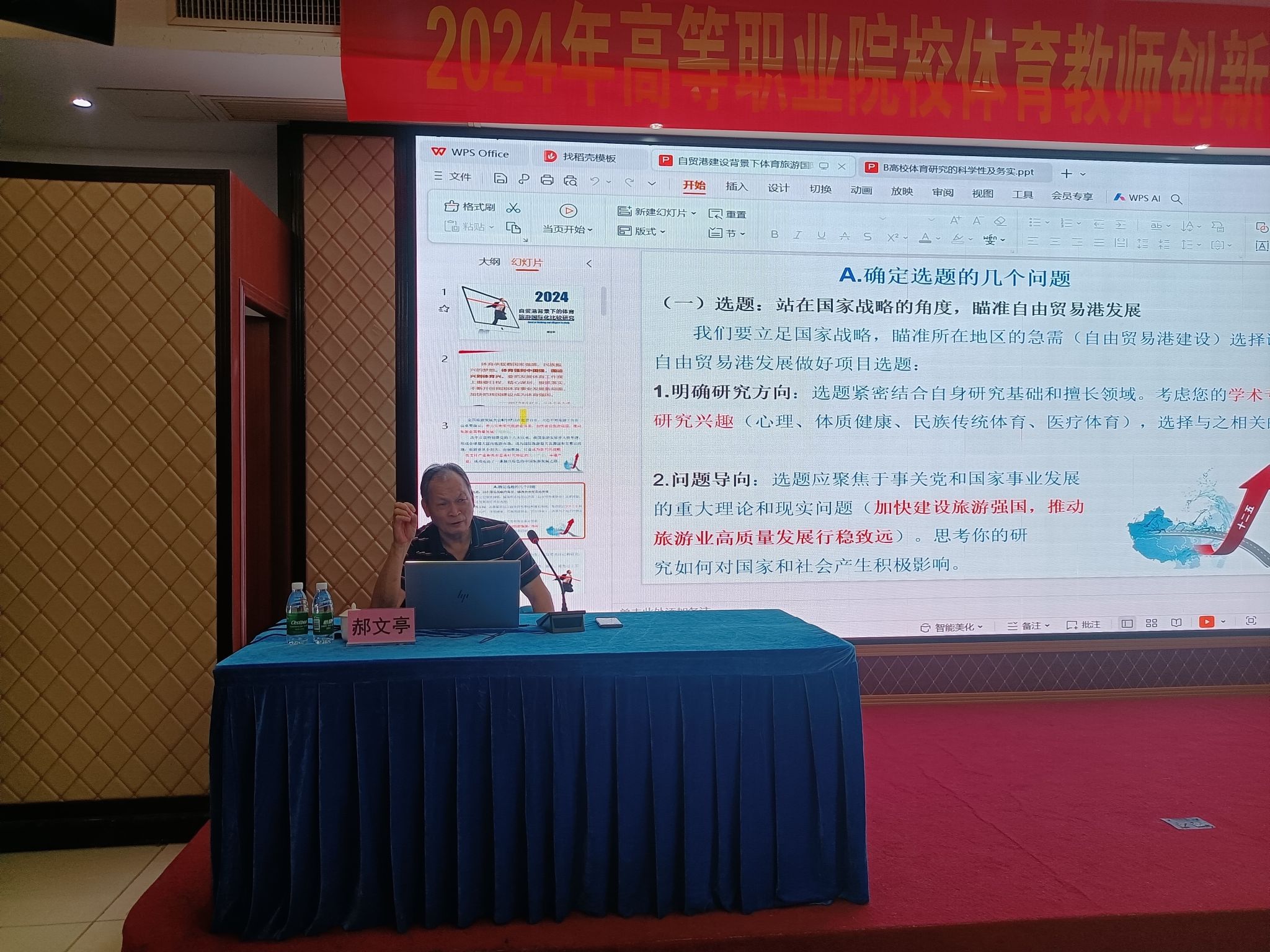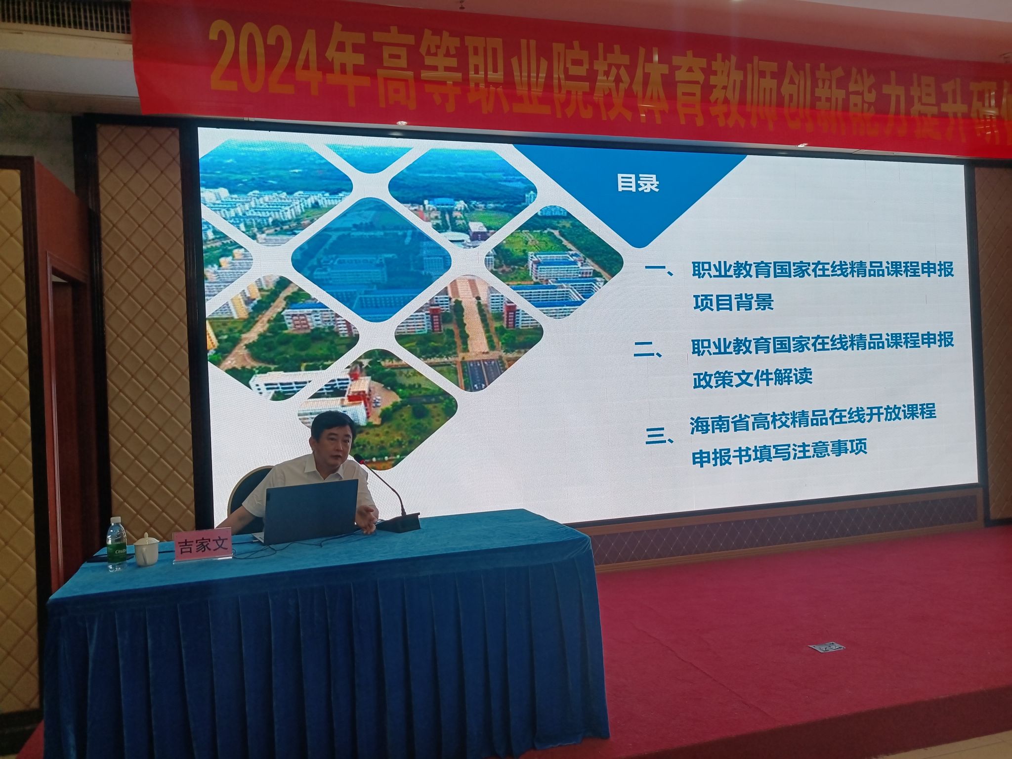 研修期间,公司为学员安排了多门精彩课程讲座及案例教学,邀请海南师范大学体育公司经理张新定教授、太阳成集团tyc234cc国际旅游公司经理吉家文教授、原海南师范大学体育公司副经理郝文亭教授、琼台师范公司体育公司经理云颖教授分别作题为《高职院校体育教师科研能力培养与提升》《职业教育国家在线精品课程建设实践与探索》 《体育休闲旅游团队建设暨国际化比较研究》《明确大纲内涵、提高教学效能》等专题授课。课程围绕体育教师科研和教学能力提升、数字化课程建设、公司产品方法理念创新等方面展开,内容丰富、形式多样,既有理论阐述,也有案例分析,力求为学员提供全方位、多角度的知识和经验传授。学员们对这期研修班给予高度肯定,表示这期研修班紧扣高等职业院校体育教师教学和科研能力建设来安排课程,切合体育教师科研及教学能力培养的现实需要,对体育教师今后的职业发展将产生积极影响。