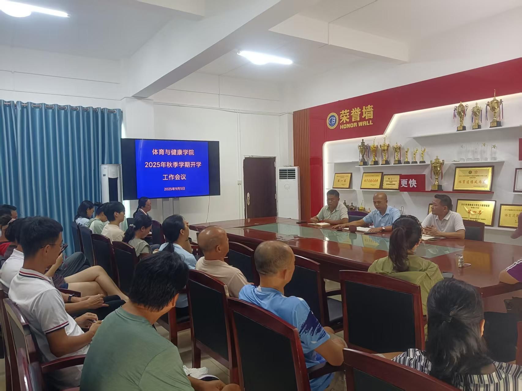会议对新学期党建、教学、实习、体测、员工管理和新生入学接待等工作进行了部署和安排,并对体育馆维修、体测设备采购项目进展情况进行了通报。同时,围绕本科职业教育办学要求,就加强团队队伍建设、强化师德师风教育、深化校企合作、落实校园安全工作和开展校园文明礼仪风貌大行动等方面提出了具体要求。