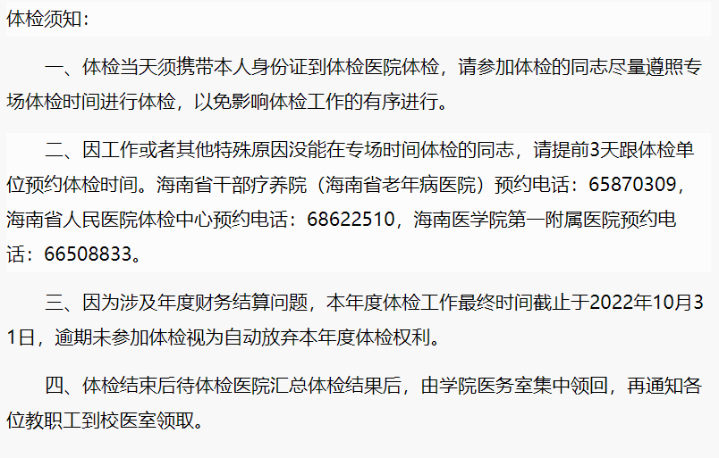 关于2022年教职工体检的通知