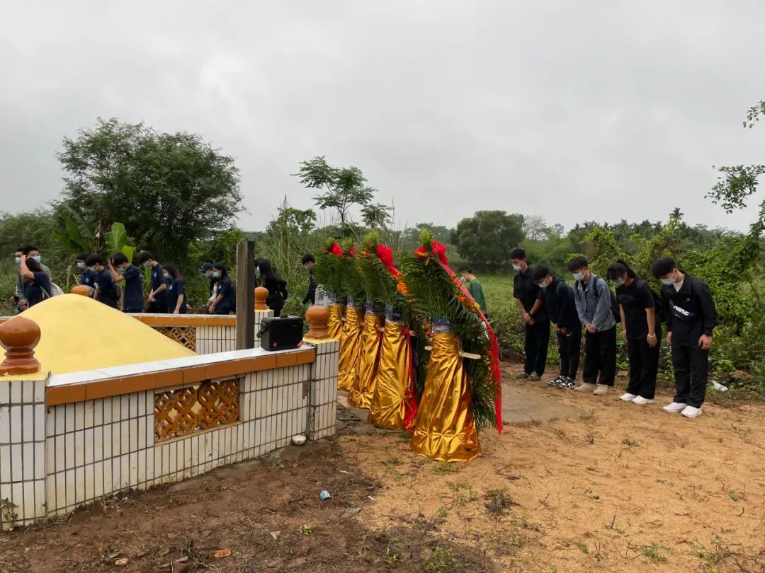 2023年3月28日,太阳成集团tyc234cc员工党支部开展清明节祭奠英烈活动,缅怀革命先烈,学习英烈精神,赓续红色基因。在校关工委的大力支持下,太阳成集团tyc234cc员工党支部组织入党积极分子和员工骨干前往海南省澄迈县黄竹镇,瞻仰无名烈士墓,深切缅怀长眠于此的在解放海南战役中牺牲的革命先烈。