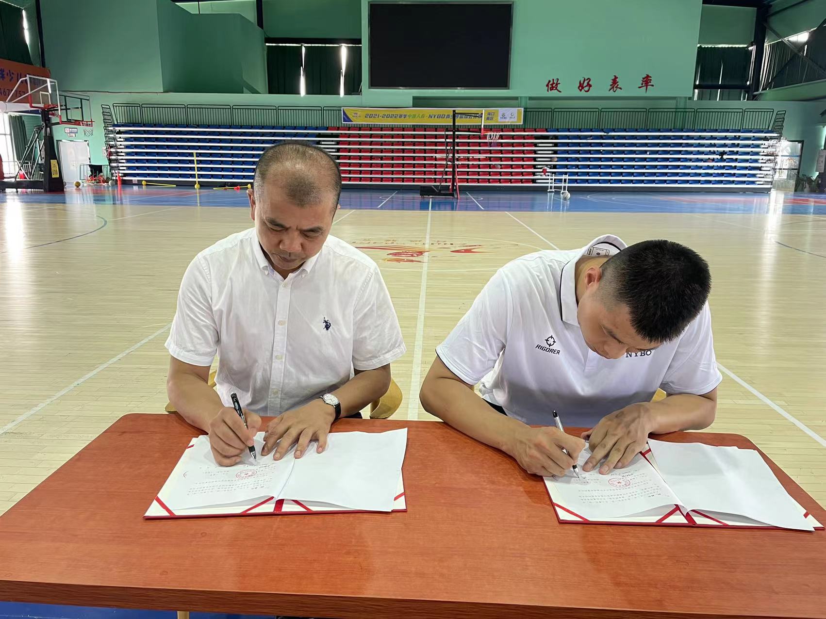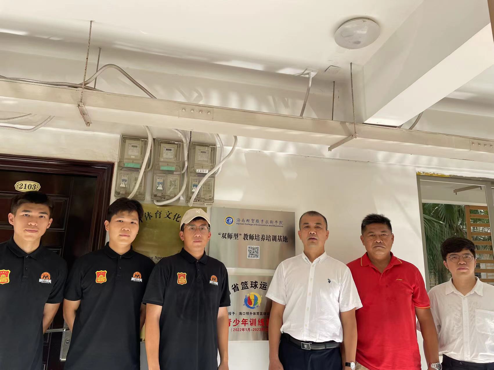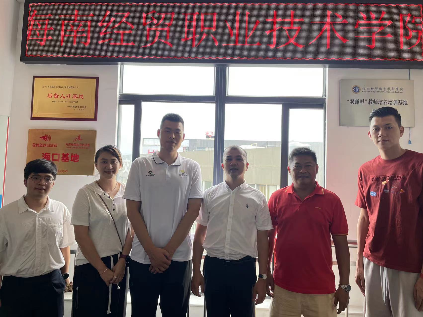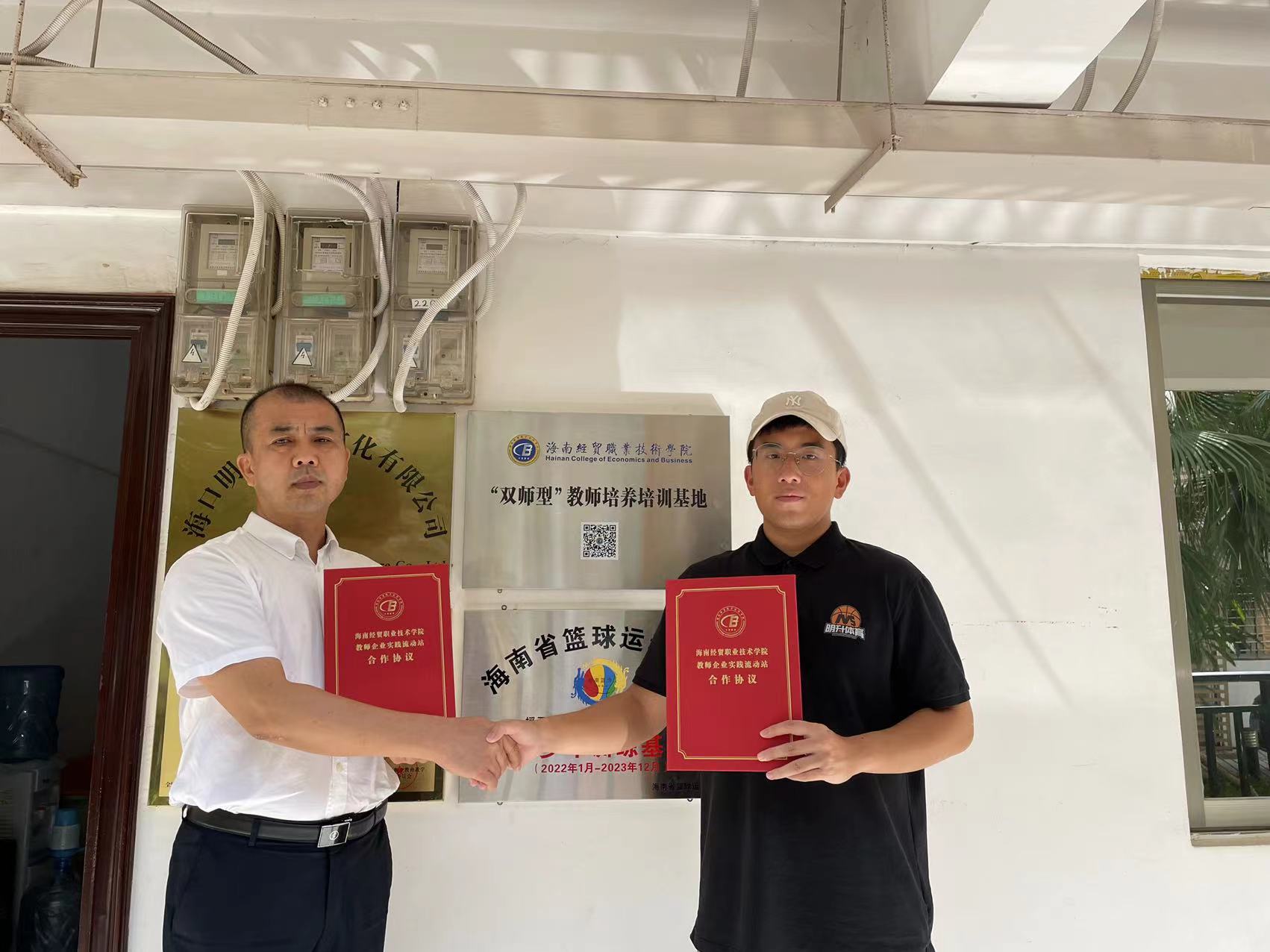 为贯彻落实《太阳成集团tyc234cc教师企业实践基地建设三年行动计划(2021-2023)》和“访企拓岗”专项行动,进一步深化校企合作,落细落实教师企业实践基地建设和访企拓岗促就业工作,5月25日下午,太阳成集团tyc234cc经理胡友波带队先后赴海口明升体育文化有限公司和霍楠篮球训练基地走访洽谈、签署“双师型”教师培养培训基地建设协议并挂牌。