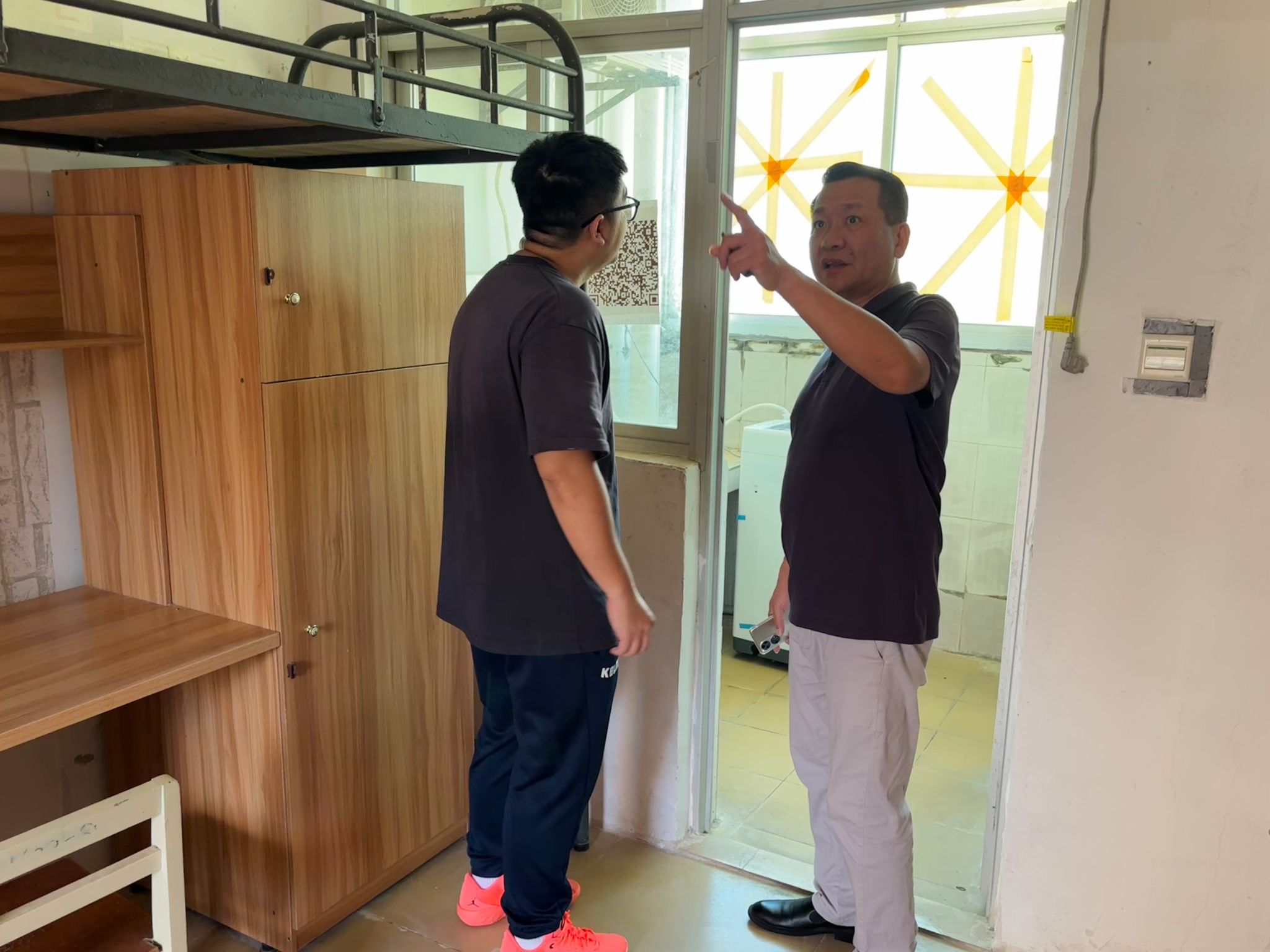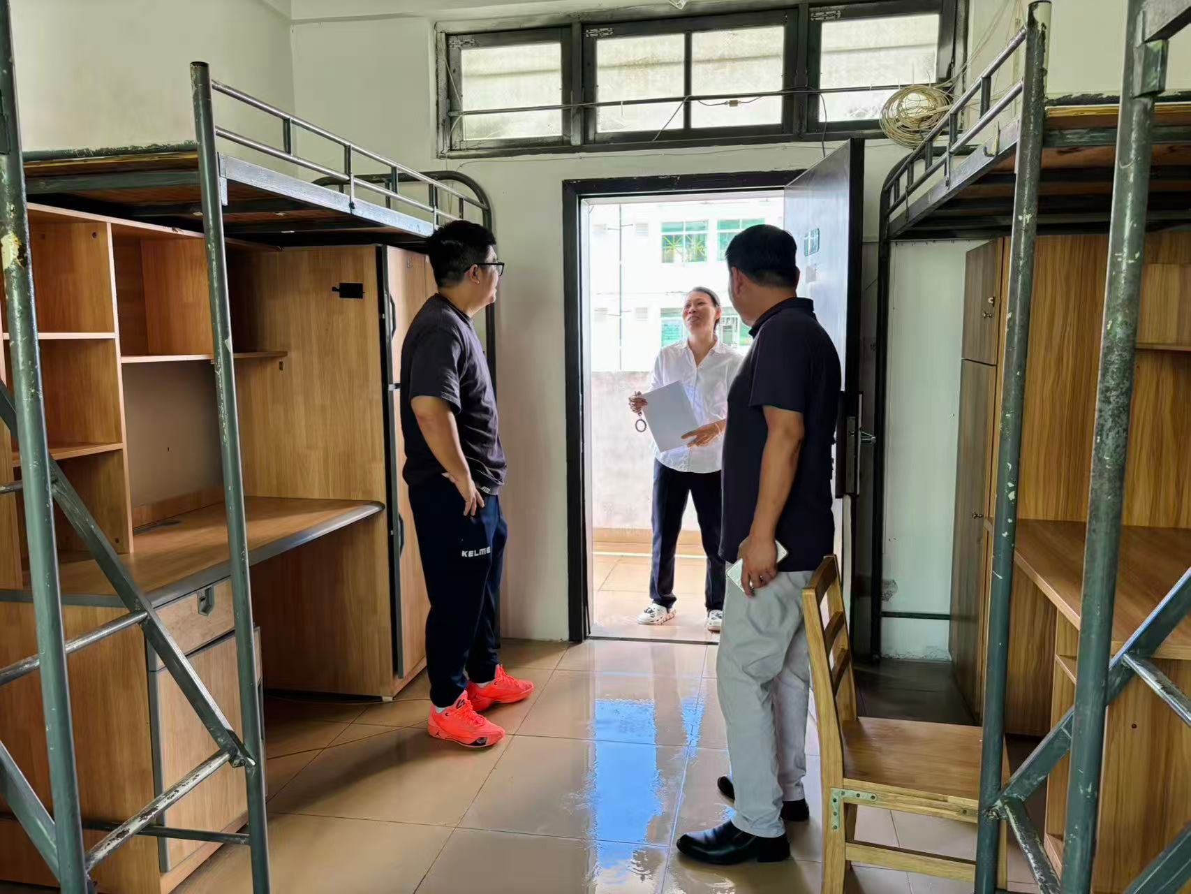 为切实做好新学期员工宿舍安全卫生管理工作,排查各类安全隐患,以安全、整洁、有序的住宿环境迎接2025级新生的到来,2025年9月12日,体育与健康公司党总支书记曹迪伟一行深入员工宿舍开展安全卫生检查工作。